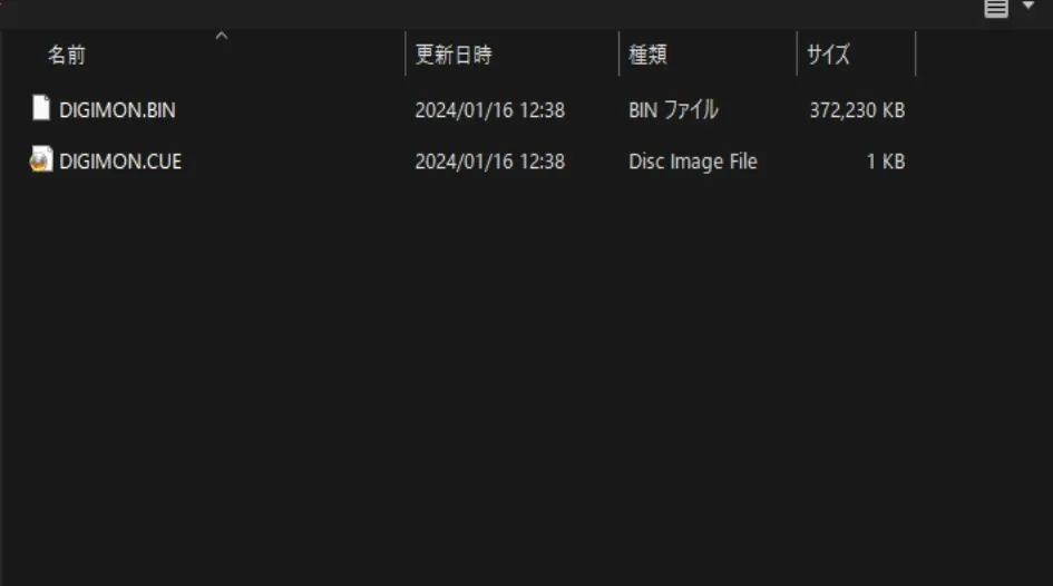 ゲームディスクをソフトを使ってパソコンに取り込んだ時、吸い出される形式がBINファイルとCUEファイルの二つです。