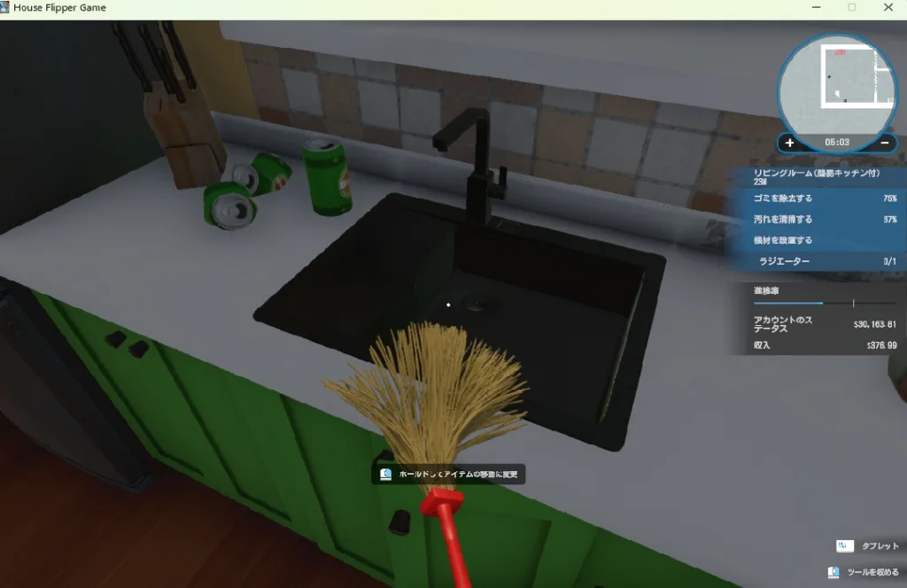 自分のスキルアップや資金を増やすという名目であるゲームの進行上、作業のくり返しに慣れてくると、若干のルーティン感を覚える場面はございました。特に掃除フェーズは、依頼内容によっては同じ動作の連続になることがあります。道具のアップグレードを進めると作業効率が大幅に上がり、ストレスは解消されていくものの、技術スキルを上げて仕上げた不動産を売買するのもある種のルーティン感はあります。