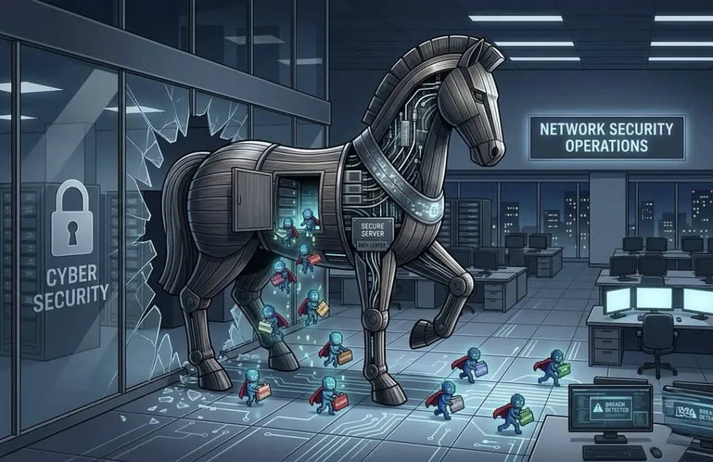 トロイの木馬(Trojan Horse)とは、一見無害なプログラムやファイルに偽装しながら、実際には悪意のある動作を行うマルウェアの一種です。その名称は、ギリシャ神話の「トロイア戦争」に登場する木馬の計略に由来しています。